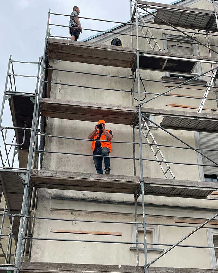 Dem Himmel so nah - für Dreharbeiten am Fürstenwall fliegen wir mal am Dom vorbei.
