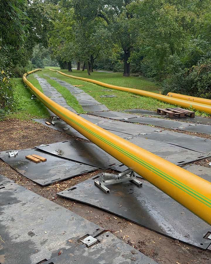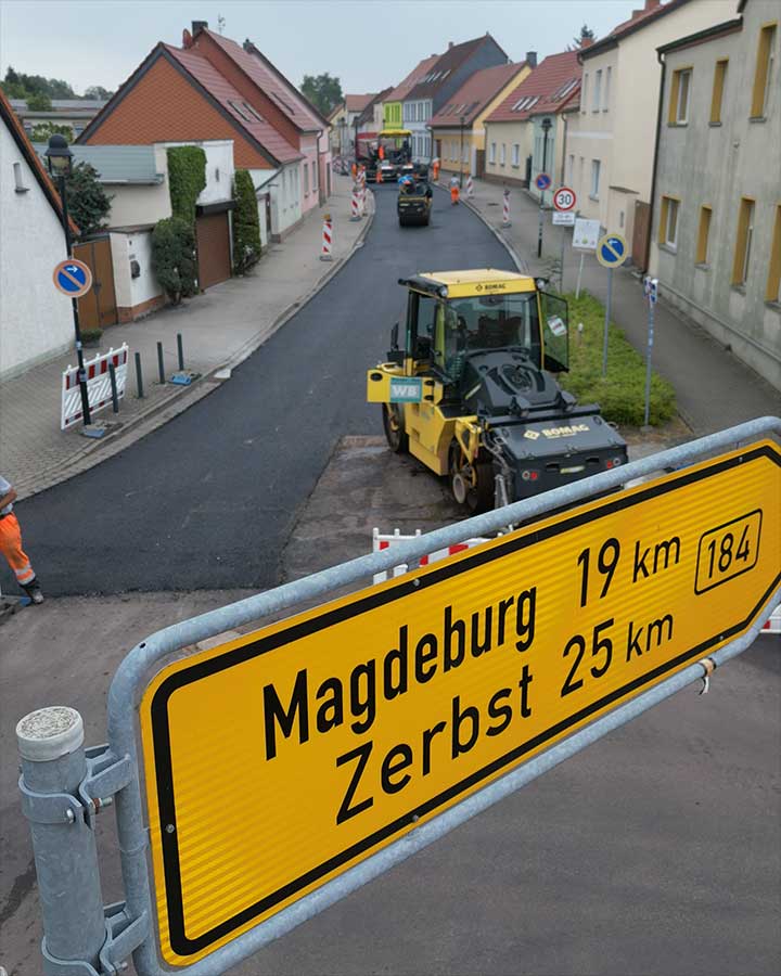Slow-Motion eines Stampfers bei der Verdichtung von Schotter.